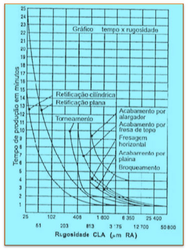 Aspectos econômicos: No acabamento superficial de um componente usinado devemos levar em conta, não somente o aspecto estético ou uma função específica, mas também, que deve ser produzido ao menor custo possível, considerando que existe uma relação direta entre o grau de acabamento e o tempo necessário para atingi-lo, como mostra a figura.