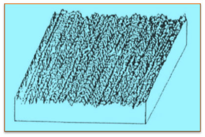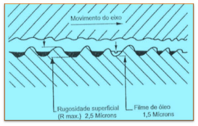 Efeito da rugosidade na lubrificação: A efetividade de um filme de óleo na lubrificação de dois componentes em movimento será nula se a profundidade da rugosidade for maior que a espessura dele, já que isso significa que haverá contato metal/metal, podendo influir não somente sua altura como também a sua forma, como mostra a Figura: