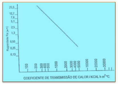 Influência da rugosidade na transmissão de calor: A influência da rugosidade superficial também pode ser sentida na transmissão de calor entre duas superfícies, onde observamos que à medida que a rugosidade diminui, o coeficiente de transmissão de calor aumenta, porque isso garante maior área de contato como ilustra a figura: