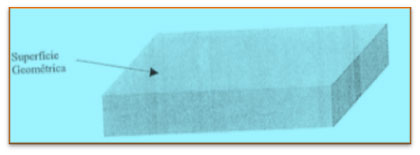 Superfície geométrica: Superfície ideal prescrita no projeto, na qual não existem erros de forma e acabamento (figura). Por exemplo, superfície plana, cilíndrica, etc., ou seja, por definição perfeita. Na realidade não existe, é apenas uma referência.