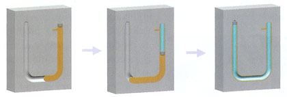 O instrumento consiste em um inserto posicionado em canais de injeção e canais quentes para modificar a distribuição do fluxo do fundido. As alterações na trajetória do fluxo provocam a redistribuição das tensões acumuladas nas diferentes seções do material, além de causar alterações de pressão e temperatura da resina.